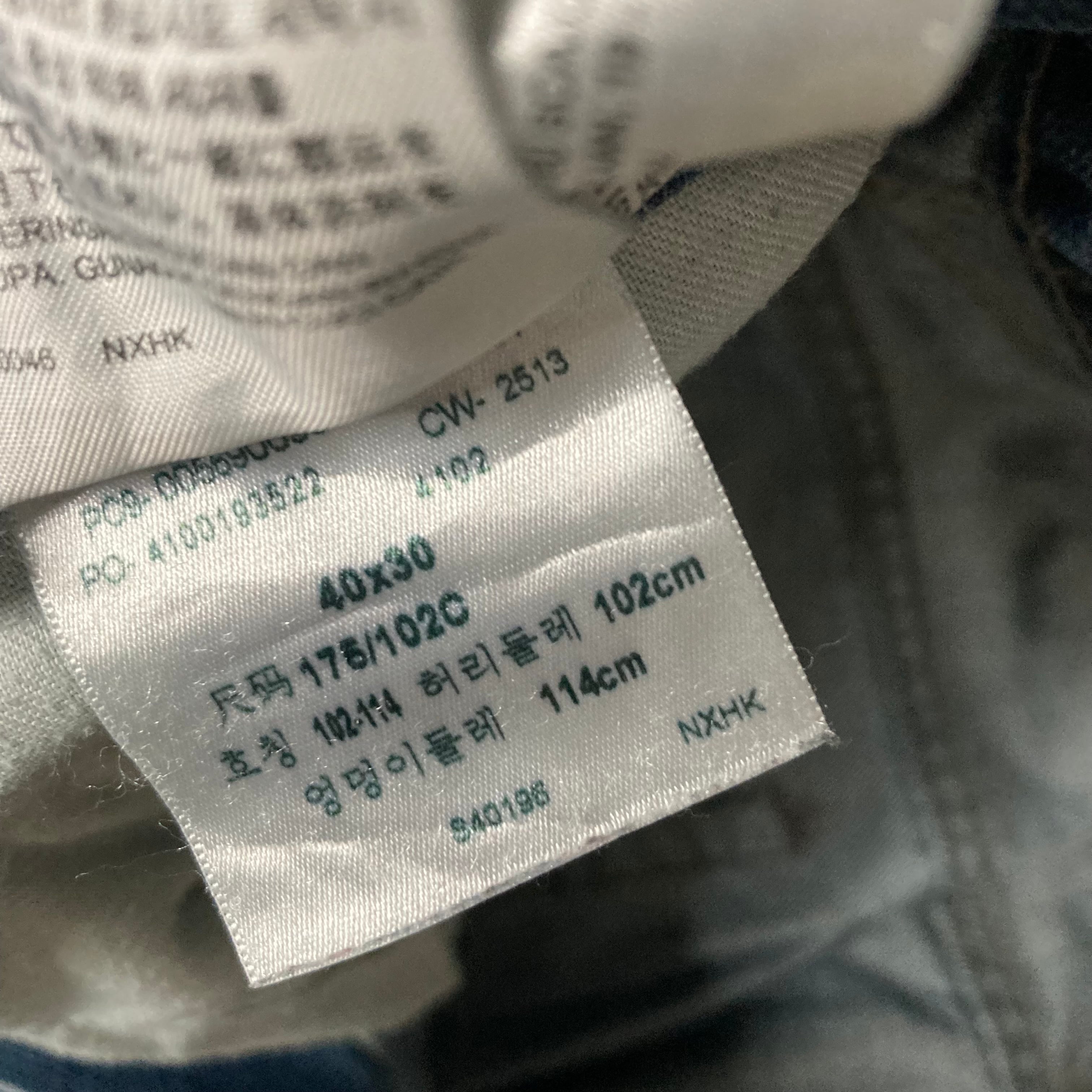 ウエスト →102 股下 →68