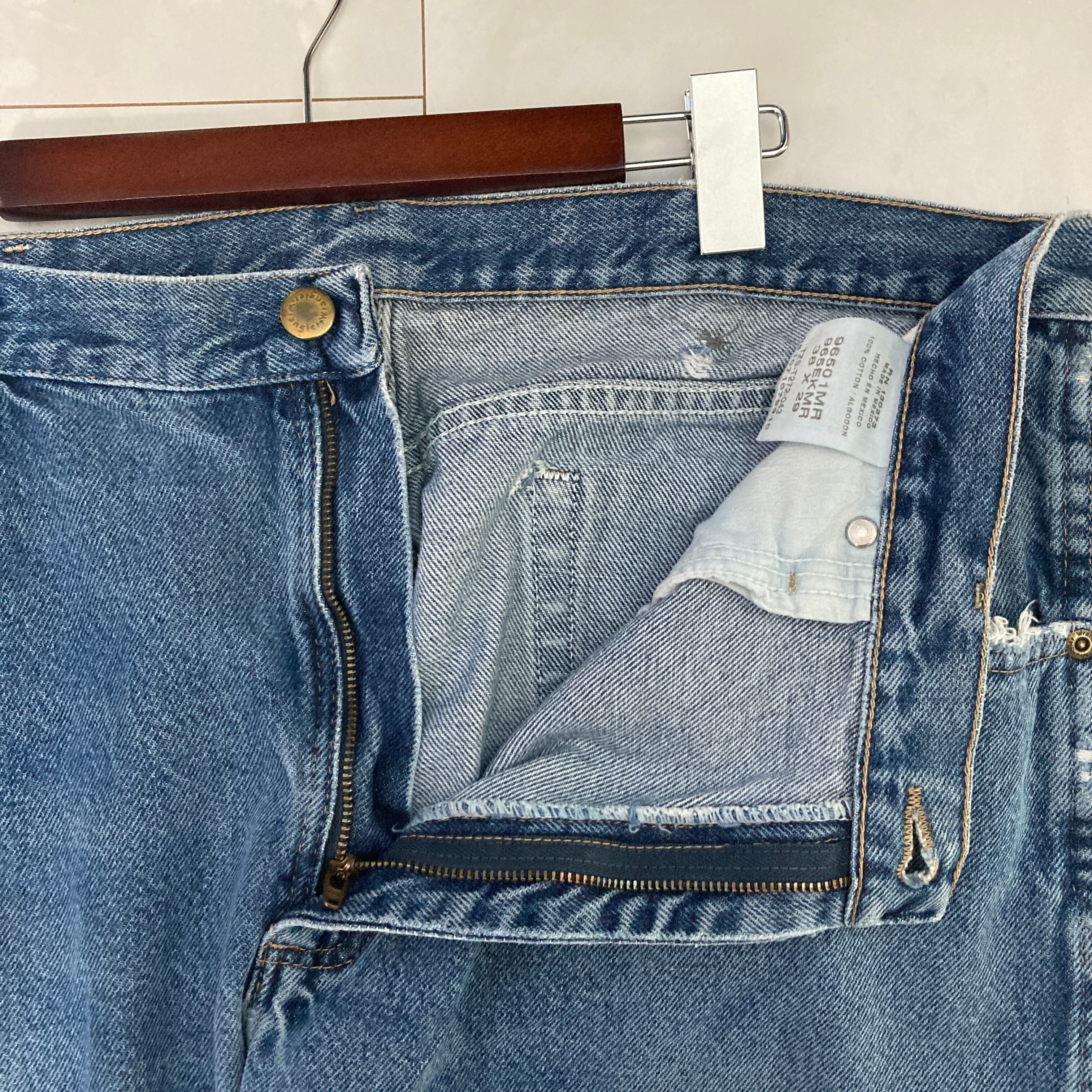 【W38×L29】wrangler デニムパンツ 革パッチ
