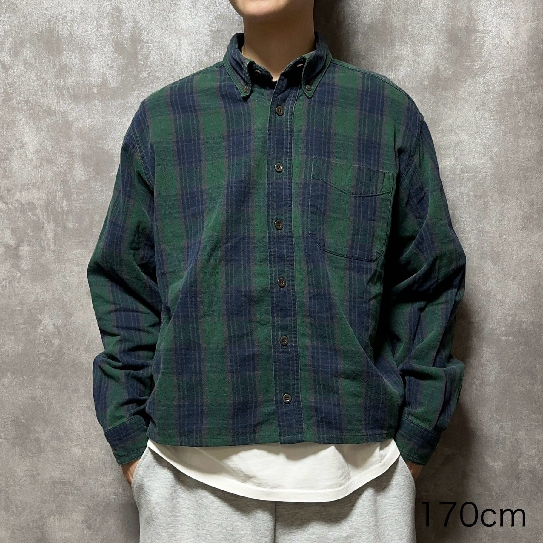 【短丈リメイク】L.L.Bean ヘビーネルシャツ M チェック柄