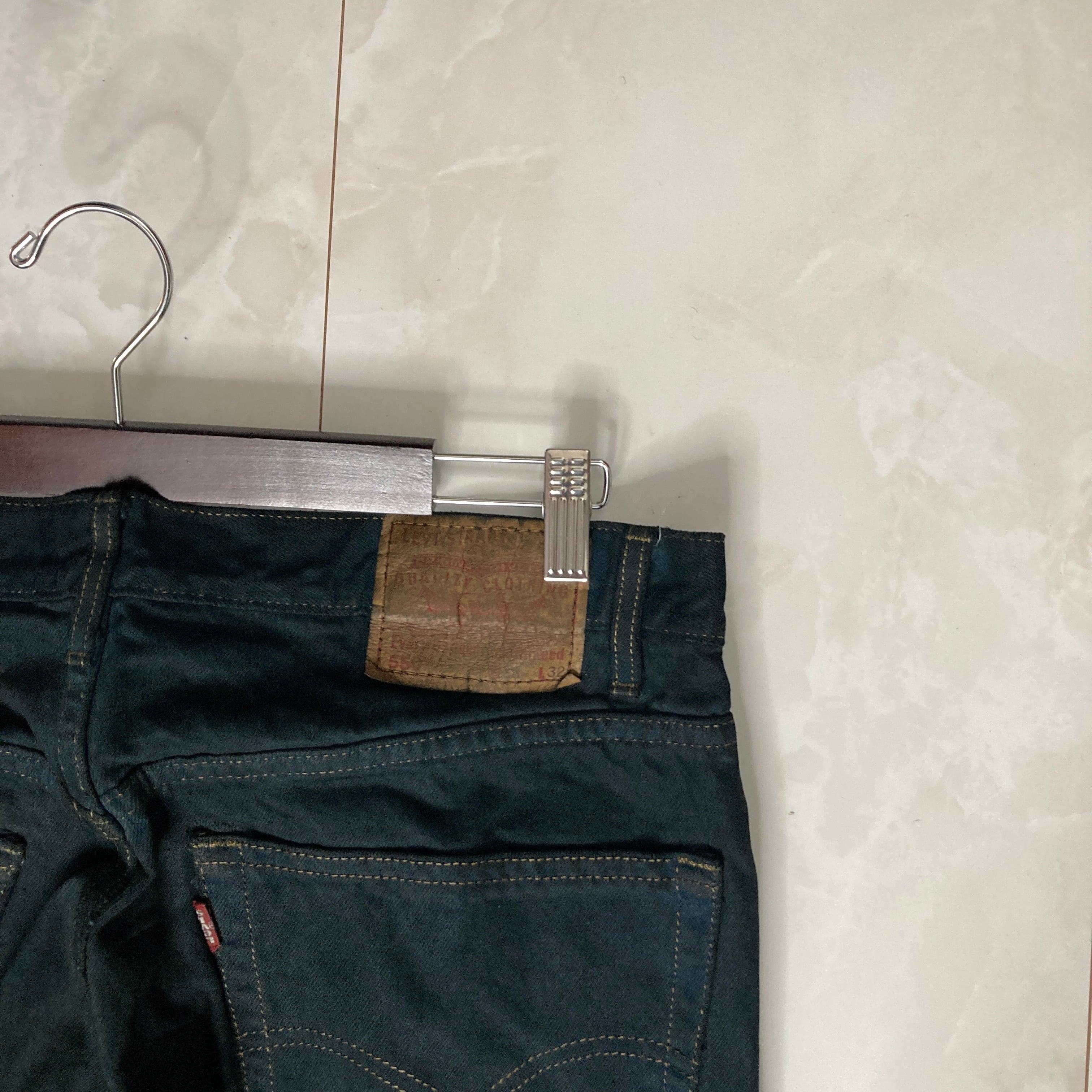 【W38×L32】Levi's550 ブラックデニムパンツ 革パッチ 後染め
